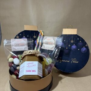 Dés de pomme, cynorhodon, framboise déshydratée, arômes naturels d’ananas, de tonka et de fraise, ananas déshydraté, hibiscus, éclats de fève